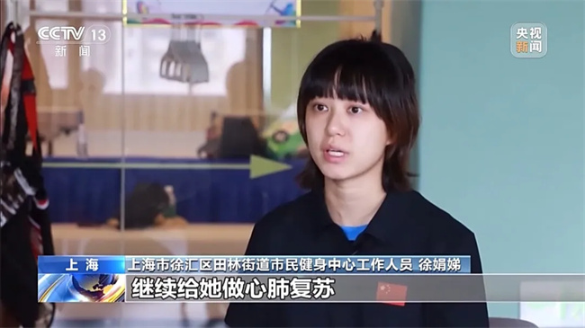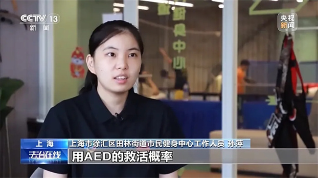 上海市徐汇区田林街道市民健身中心工作人员 孙萍:急救培训的时候,老师特意说过,用AED的救活概率和普通做心肺复苏是不一样的,所以希望我们能尽快给她进行急救,能让她恢复意识。
