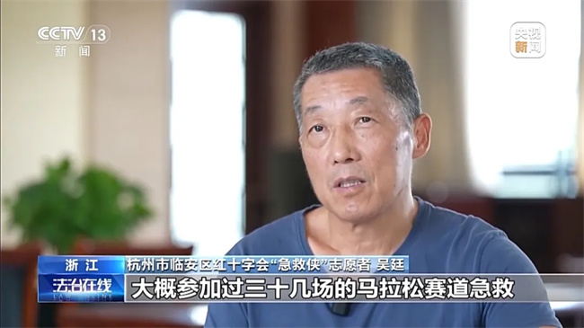 杭州市临安区“急救侠”志愿者 吴廷:我从2016年开始,通过参加马拉松赛道急救开始加入院前急救工作当中。到今天为止大概参加过三十几场的马拉松赛道急救,杭州120急救中心的志愿者和临安的“急救侠”,大概已经出过10次任务了。
