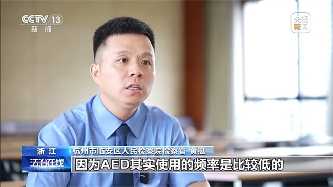 杭州市临安区人民检察院检察官 黄挺:一方面可能各个配置单位在这方面的意识还不够,因为AED其实使用的频率是比较低的,因为它只有在紧急情况下才会使用。可能配置单位的管理人员也主观意识上还没那么重视,他可能没有从需求导向来放置AED。